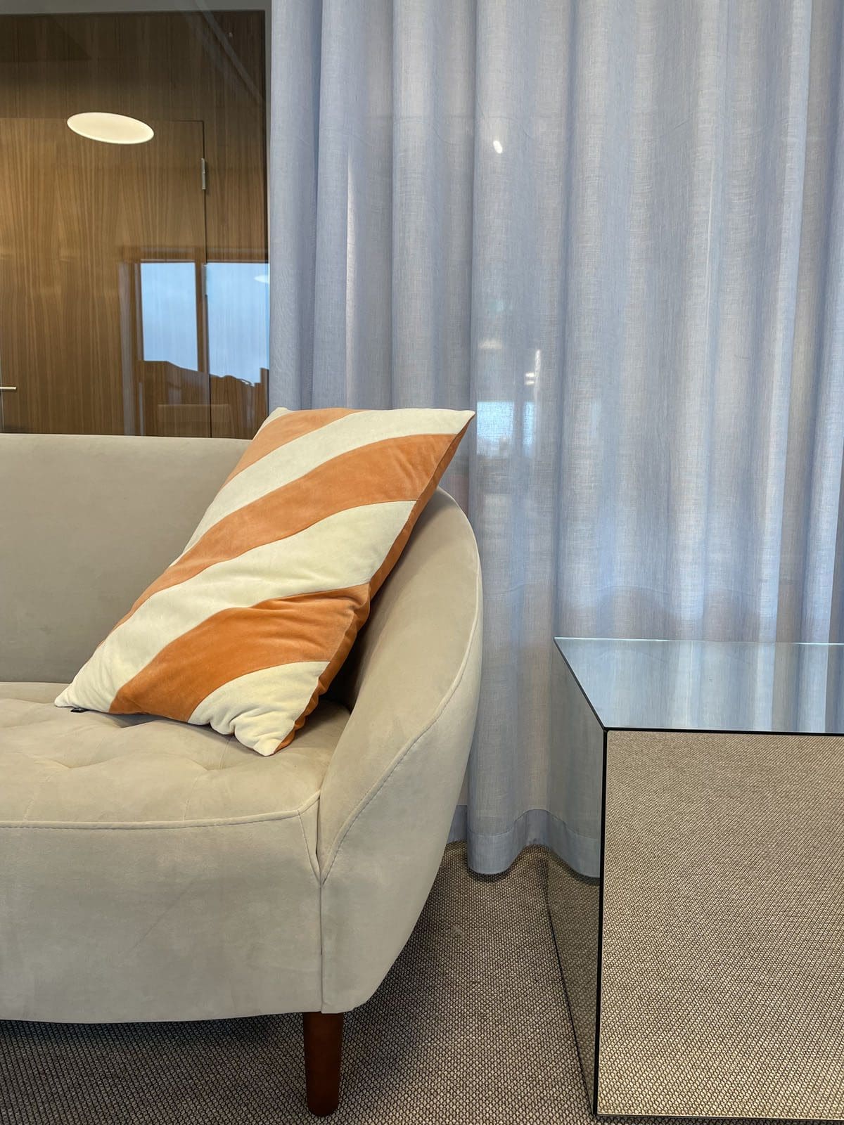 Behaglig avskärmning med ljusa gardiner.