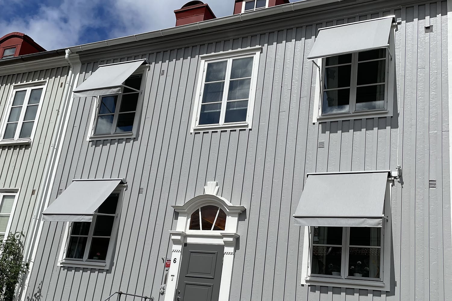 En tidlös och smidig fönstermarkis där duken ligger skyddad i en kassett. Dalhem är en kompakt fönstermarkis med fallarmar och högkvalitativ akrylväv som passar många fastigheter och miljöer. Lika populär i privata hem som i offentliga verksamheter. Perfekt om du vill sammankoppla flera markiser för intilliggande fönster eller ett burspråk. I stället för vanlig markisväv kan du välja en screenväv och njuta av utsikten samtidigt som du får ett pålitligt solskydd.